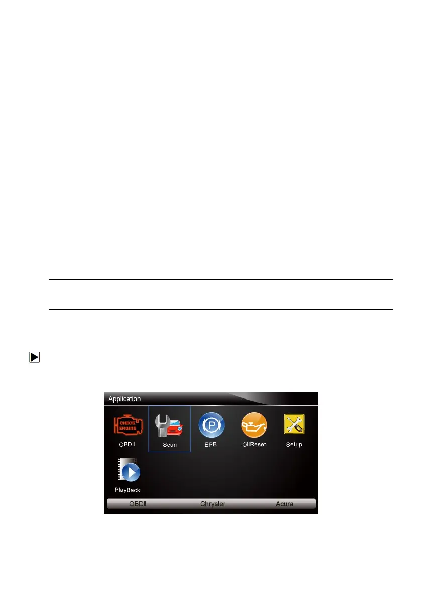1. Scroll with the arrow keys to highlight Scan from the Application menu and press the ENTER