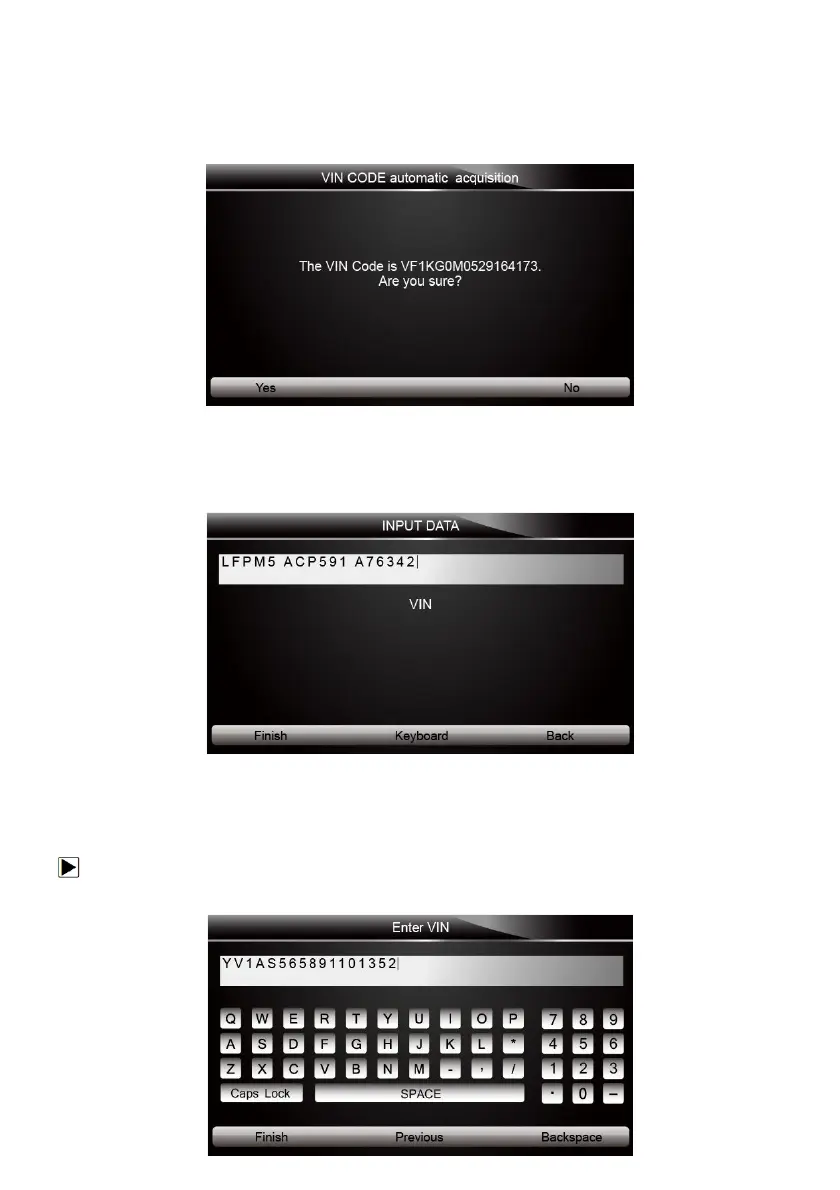 selection displays. Answer NO if it is incorrect, and you are required to enter the correct VIN