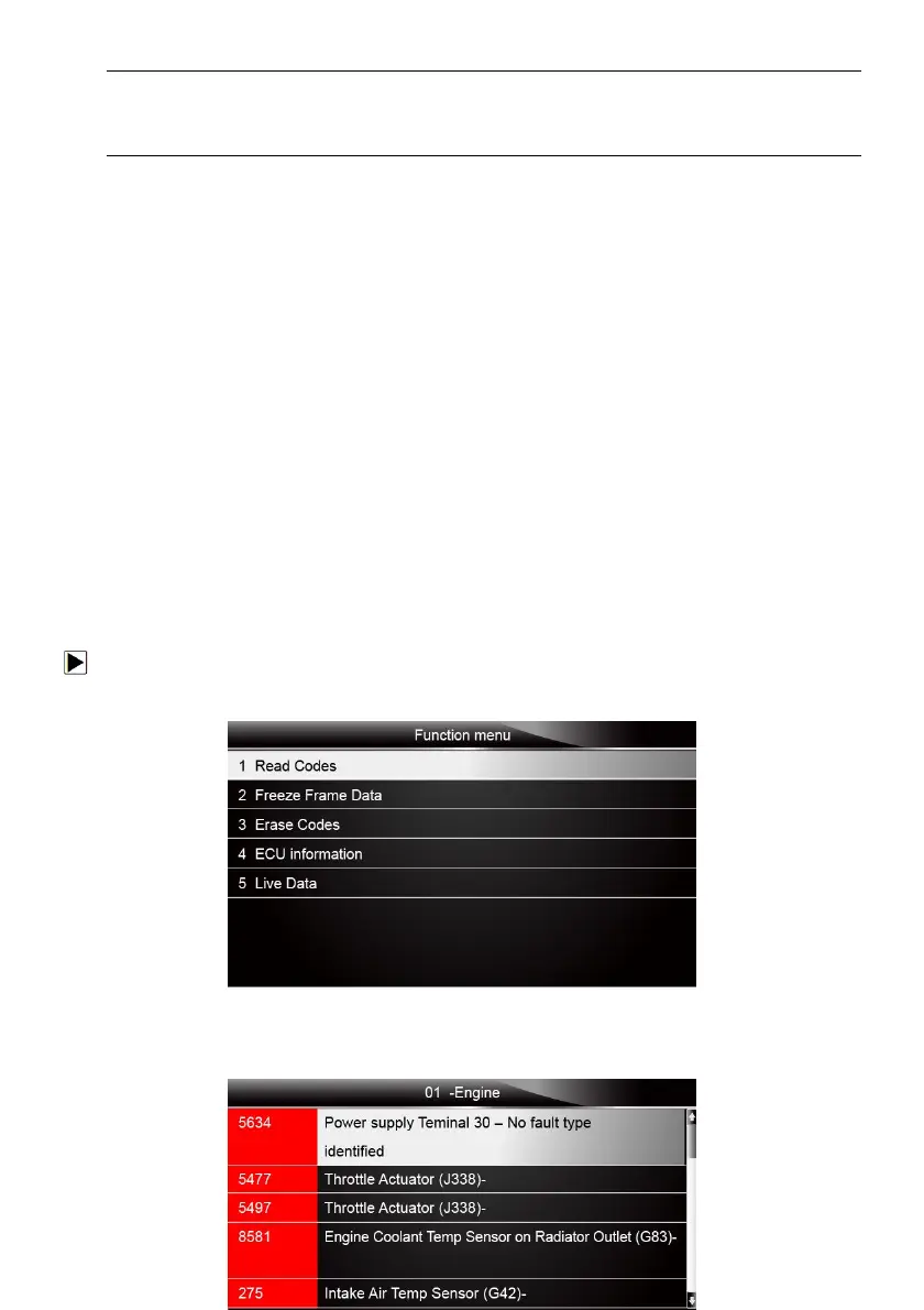 1. Scroll with the arrow keys to highlight Read Codes from Function Menu and press the ENTER