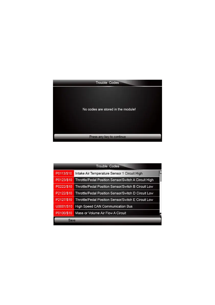 If no DTCs are present the message “No (Pending) Codes Found!” is displayed. If any