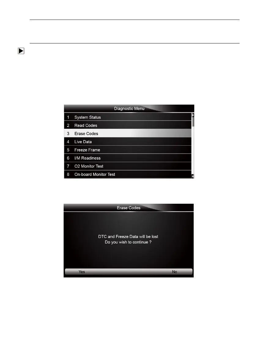 1. Scroll with the arrow keys to highlight Erase Codes from Diagnostic Menu and press the