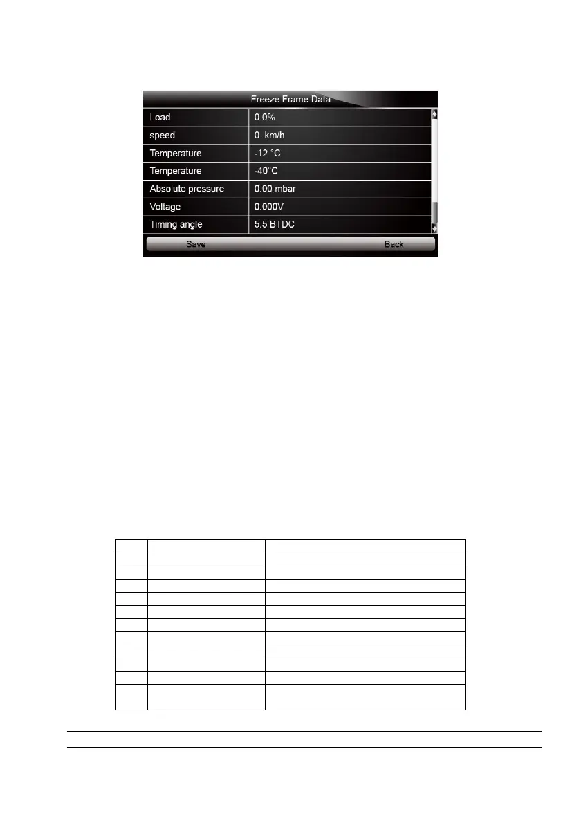 3. Press function key Save to store freeze frame information. Or use the BACK key to exit.