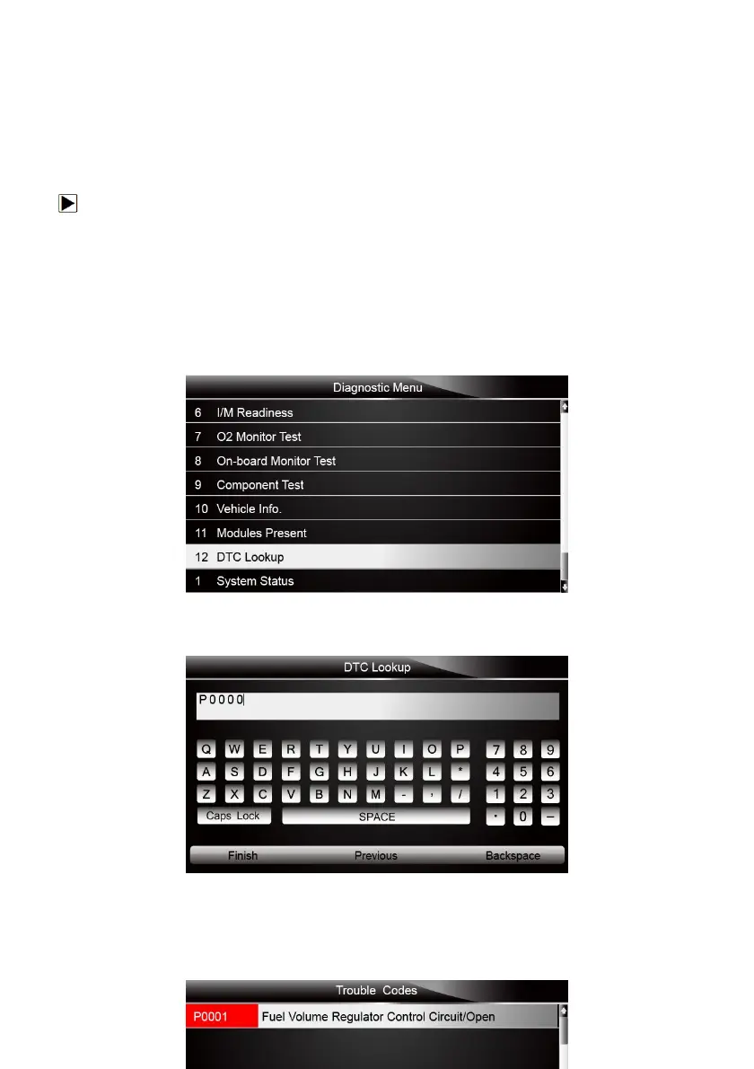 1. Scroll with the arrow keys to highlight DTC Lookup. from Diagnostic Menu and press the