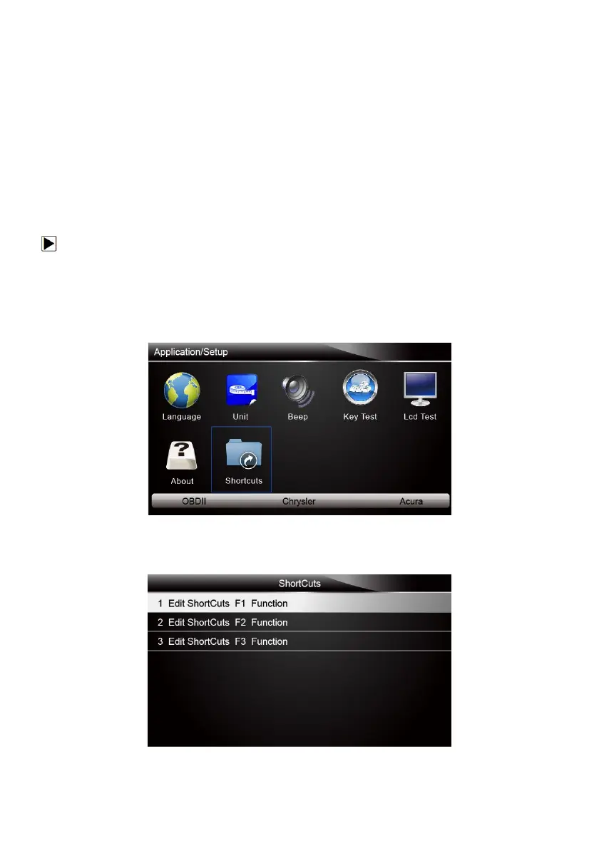 2. Press the UP/DOWN arrow key select an shortcut key and press the ENTER key. A screen with