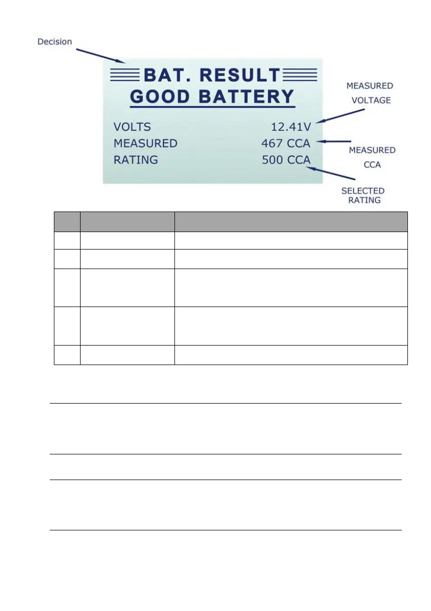 9. Press the BACK button to return to Main Menu. Or, press the ENTER button for cranking test
