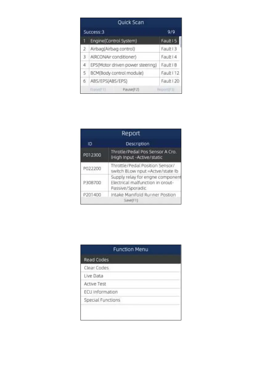 4. If there is diagnostic trouble code(s) detected in a control unit, press the function key corresponding