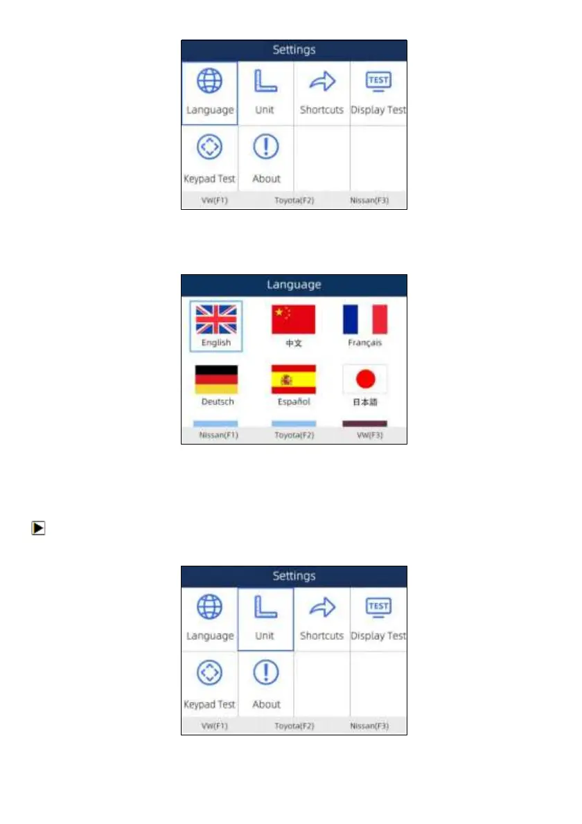 1. Scroll with the arrow keys to highlight Units from Settings menu and press the ENTER key.