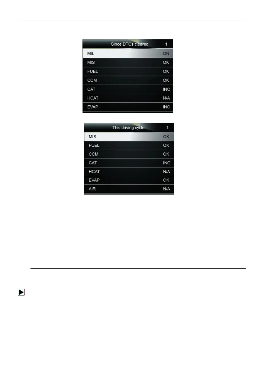 3.Depending on readiness test, one of these 2 screens will be present. Use the up and down