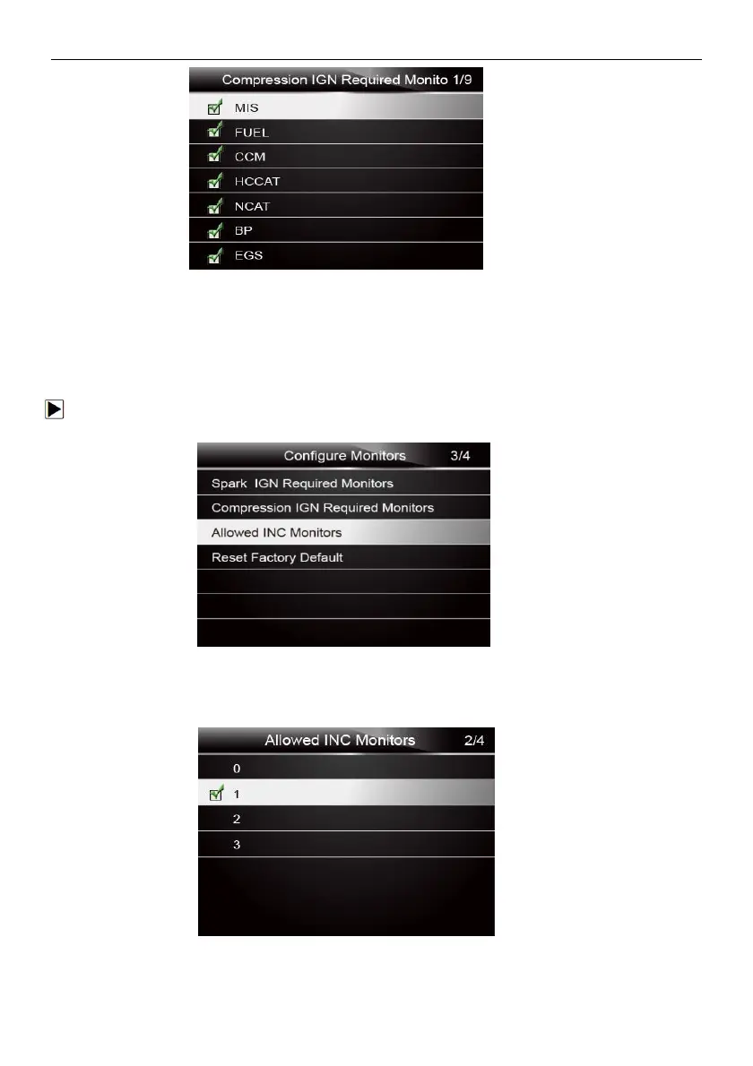 1. Use the UP/DOWN key to highlight Allowed INC Monitors from the menu and press the ENTER