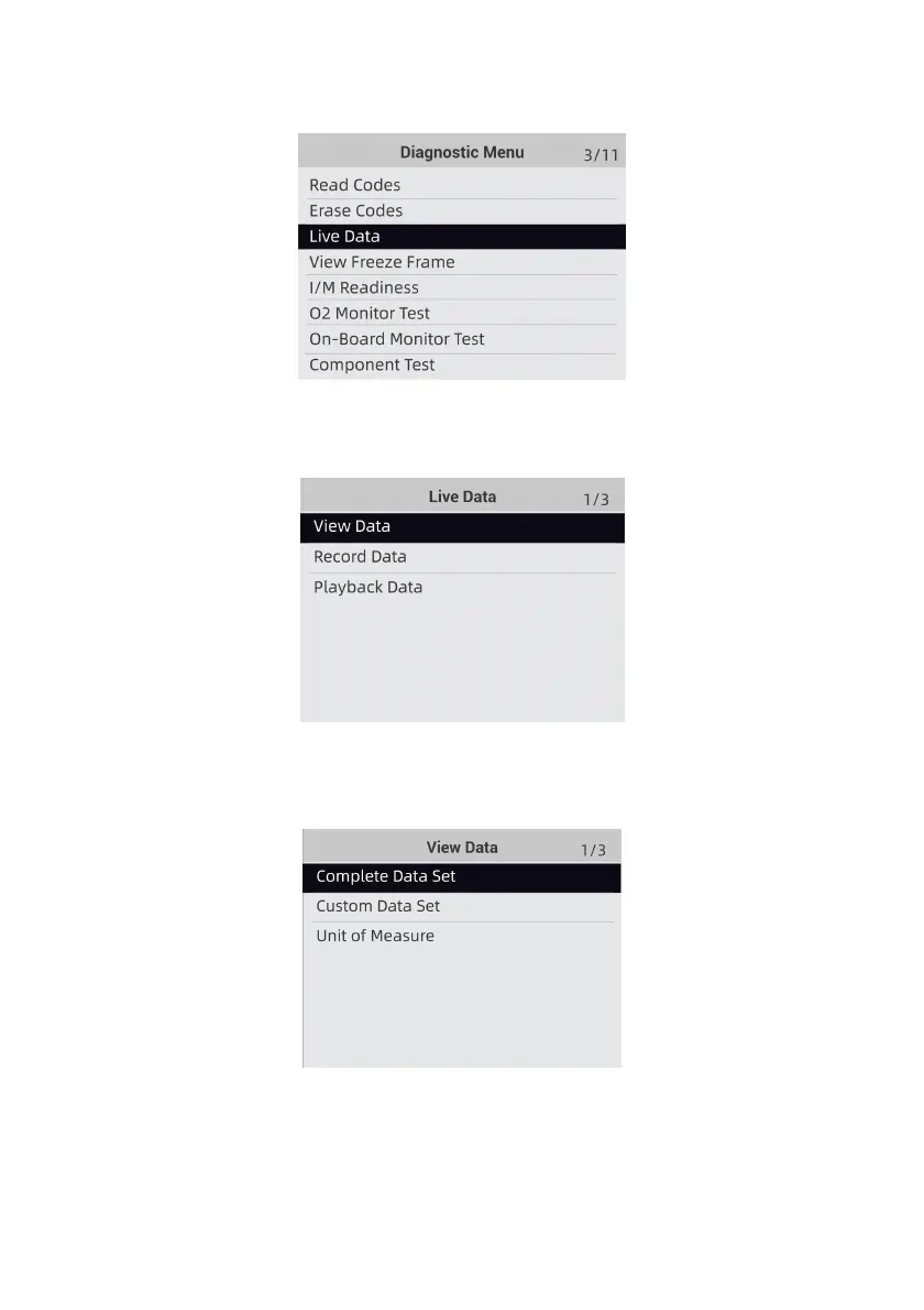 Figure 4-9 Sample Live Data Menu Screen