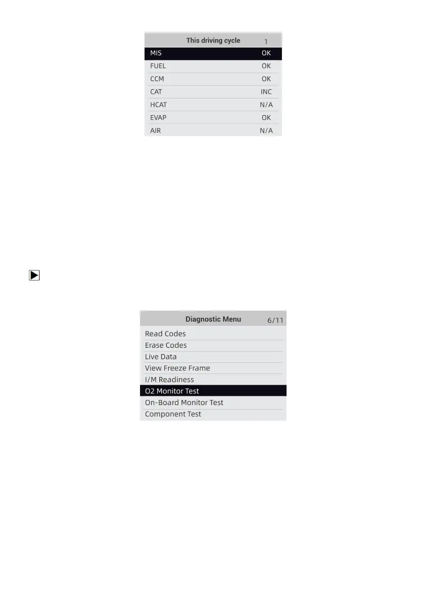 and emissions related faults. The O2 Monitor Test function is used to retrieve completed O2