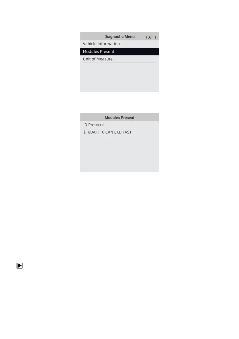 1. Use the UP/DOWN key to highlight Modules Present from Diagnostic Menu and press the