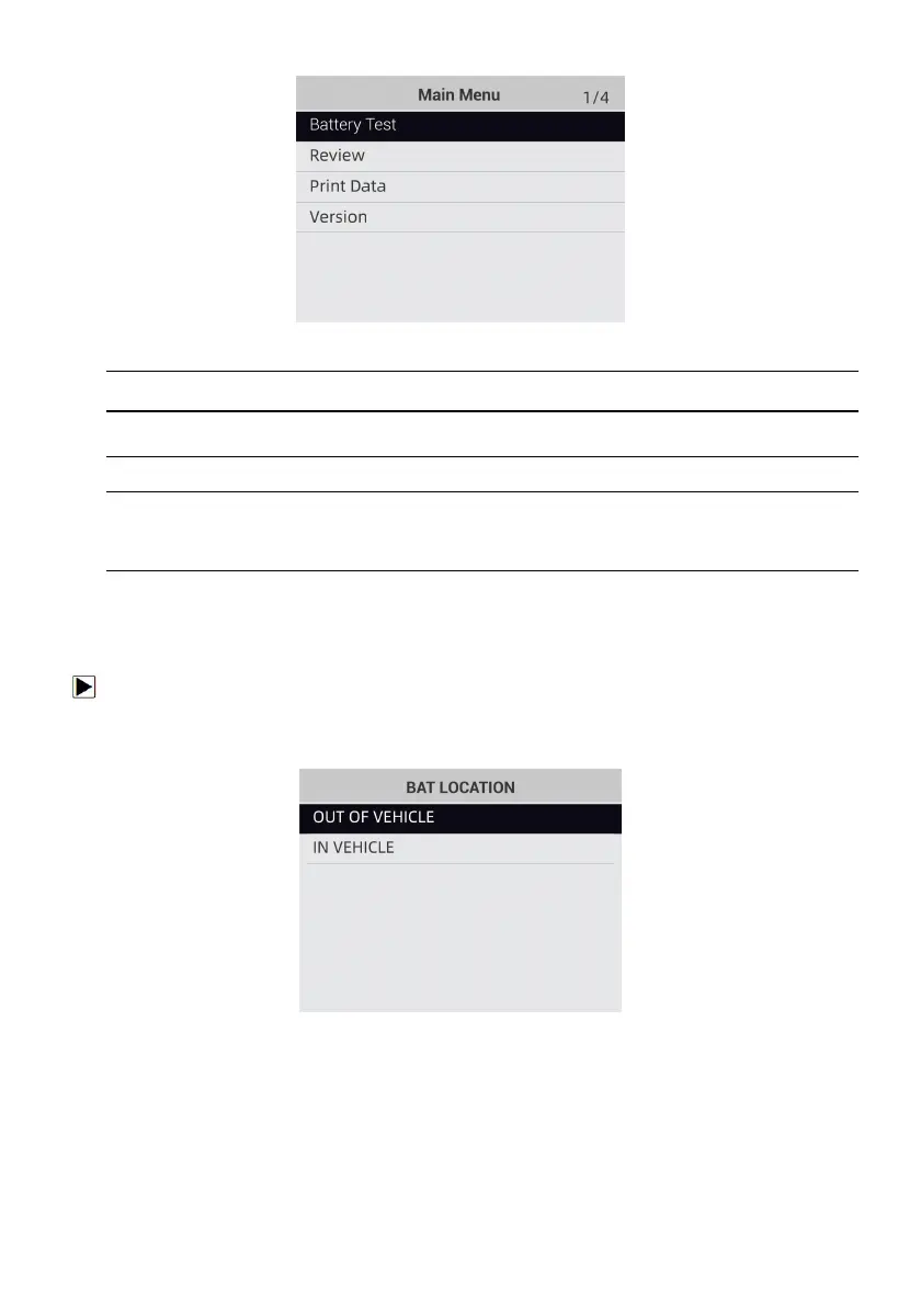 1. Press the ENTER button to start the test. BAT. LOCATION Menu will display.