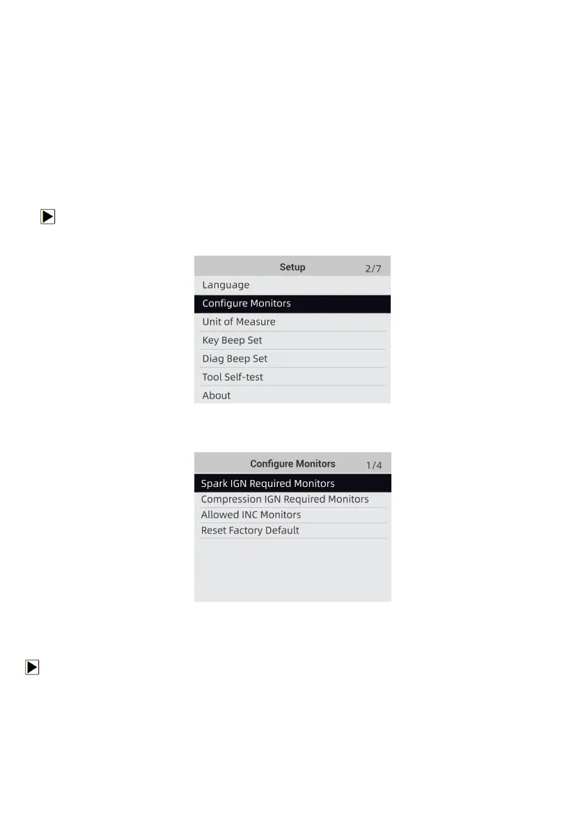 In this menu, the operators can configure monitors for spark ignition cars (gasoline engines).