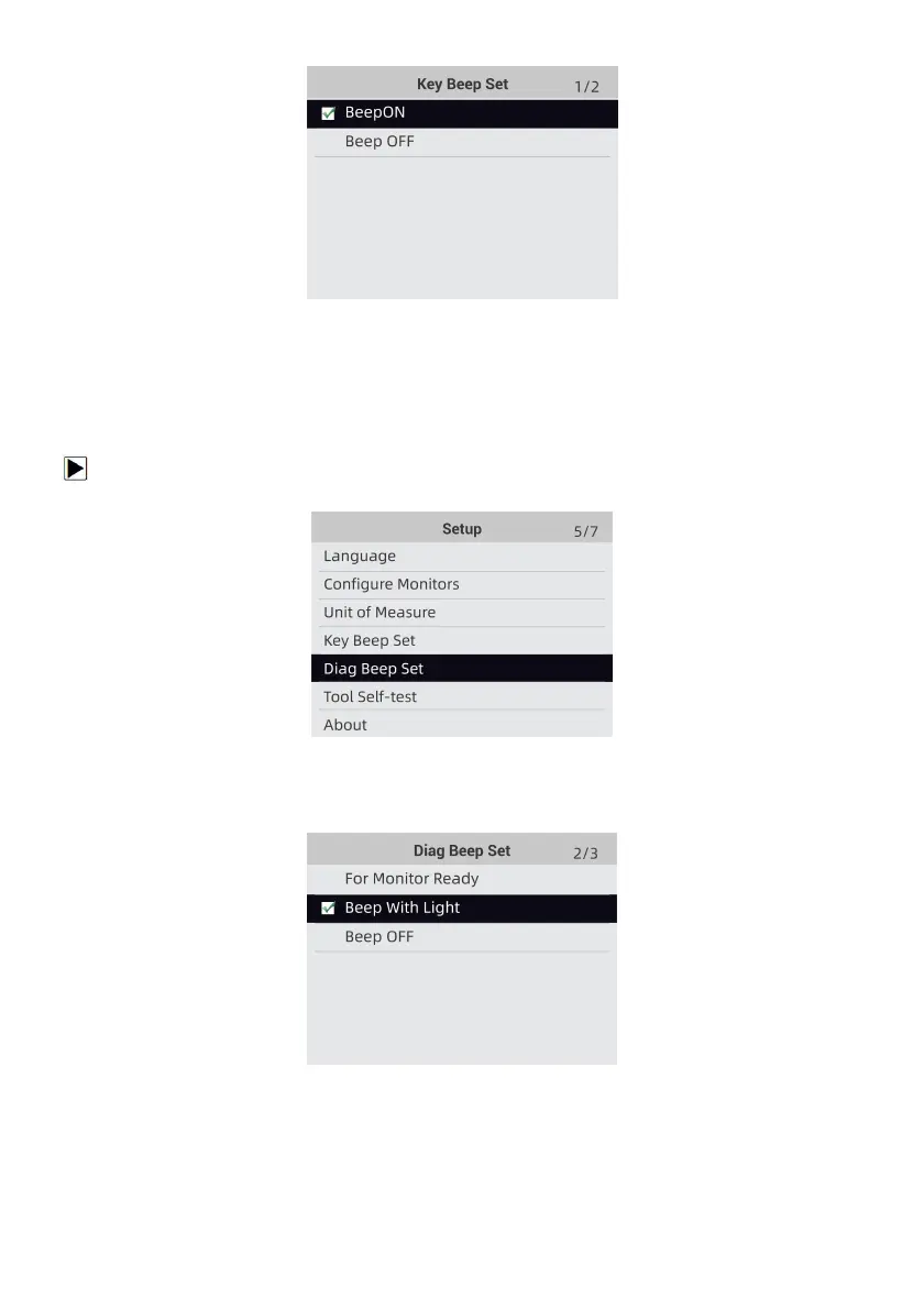 1. Use the UP/DOWN key to highlight Key Beep Set from Setup menu and press the ENTER key.