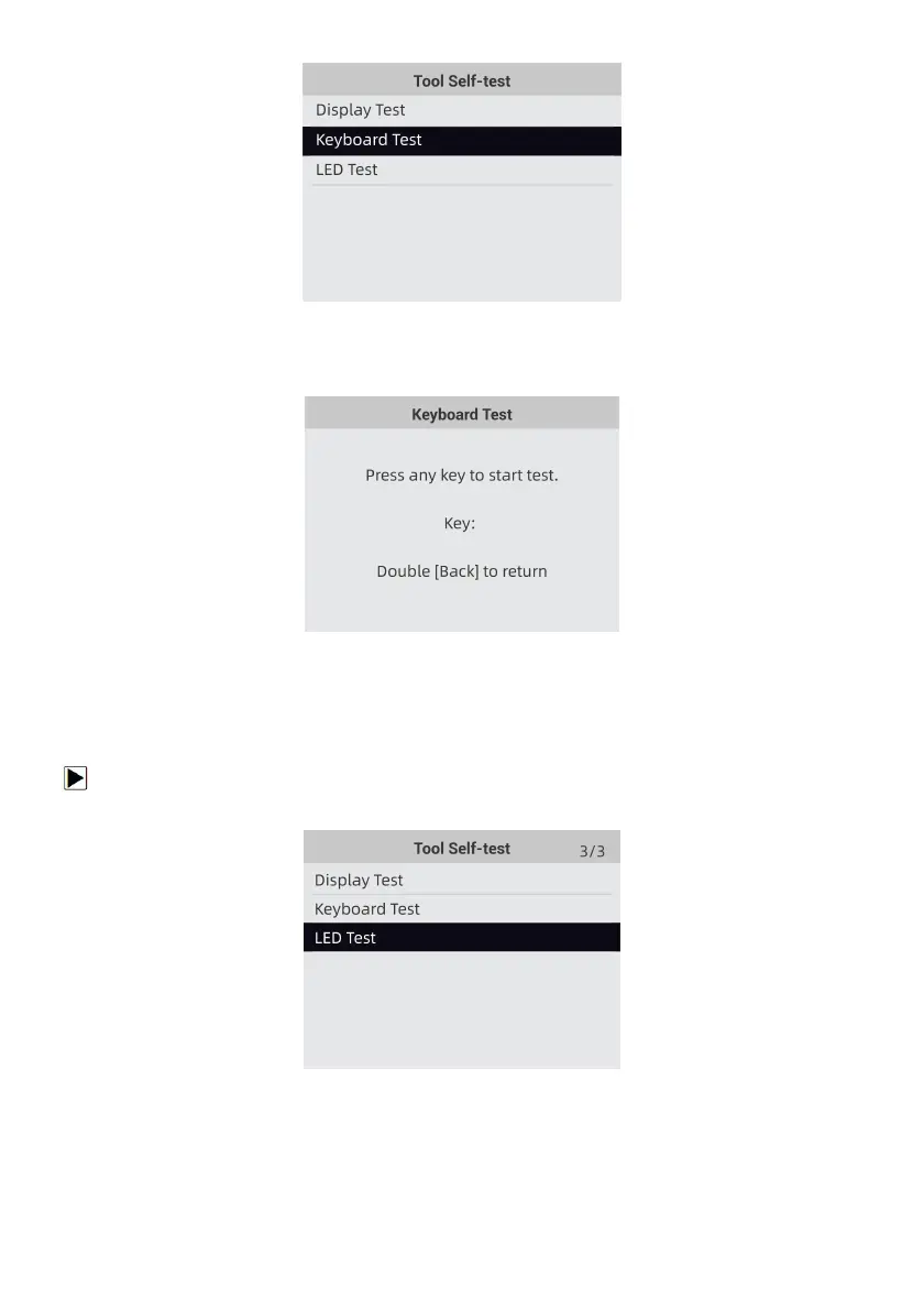 Selecting LED Test option opens a screen that allows you to check the functionality of the LED.