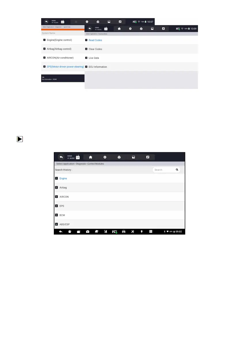 Control Modules display all controllers available of the vehicle