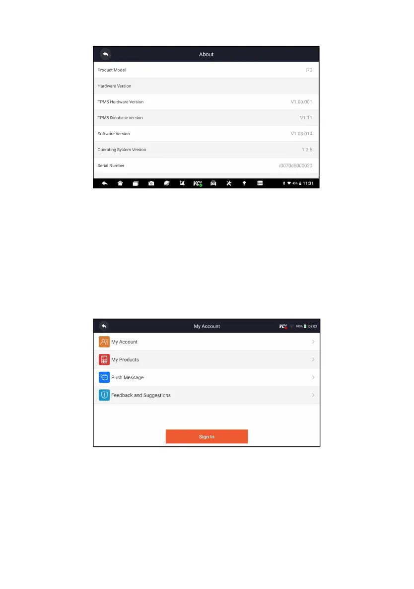 This section displays the information related to your account and product.