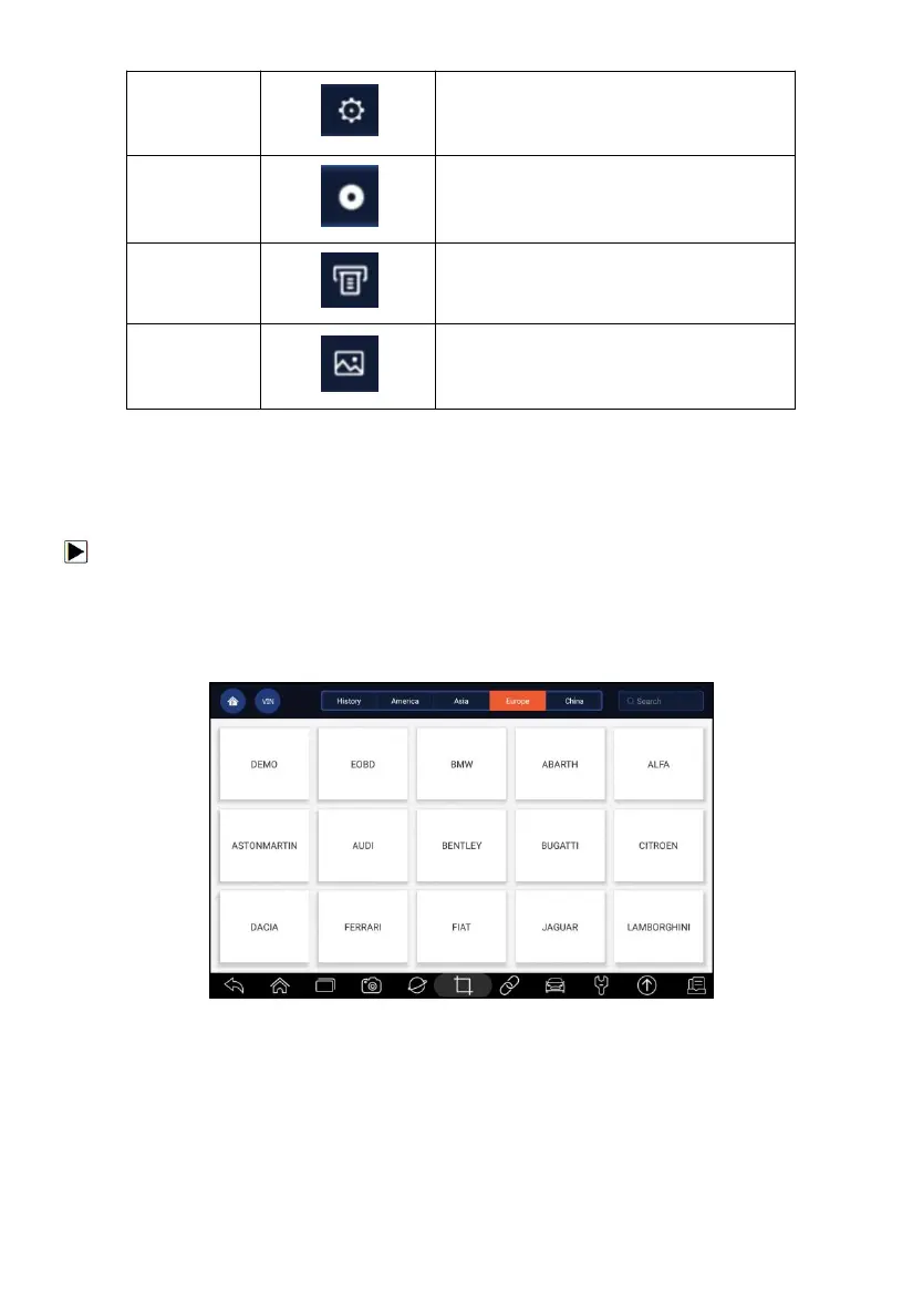 2. A screen with vehicle manufacturers displays. Select the area where the