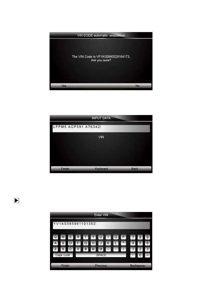 selection displays. Answer NO if it is incorrect, and you are required to enter the correct VIN