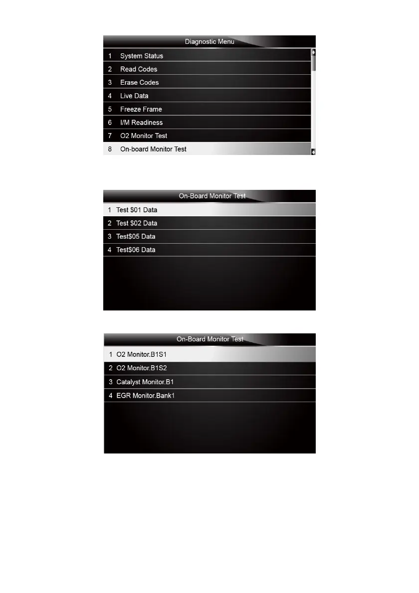 2. Depending on the protocol the vehicle used, one of these 2 screens shows.