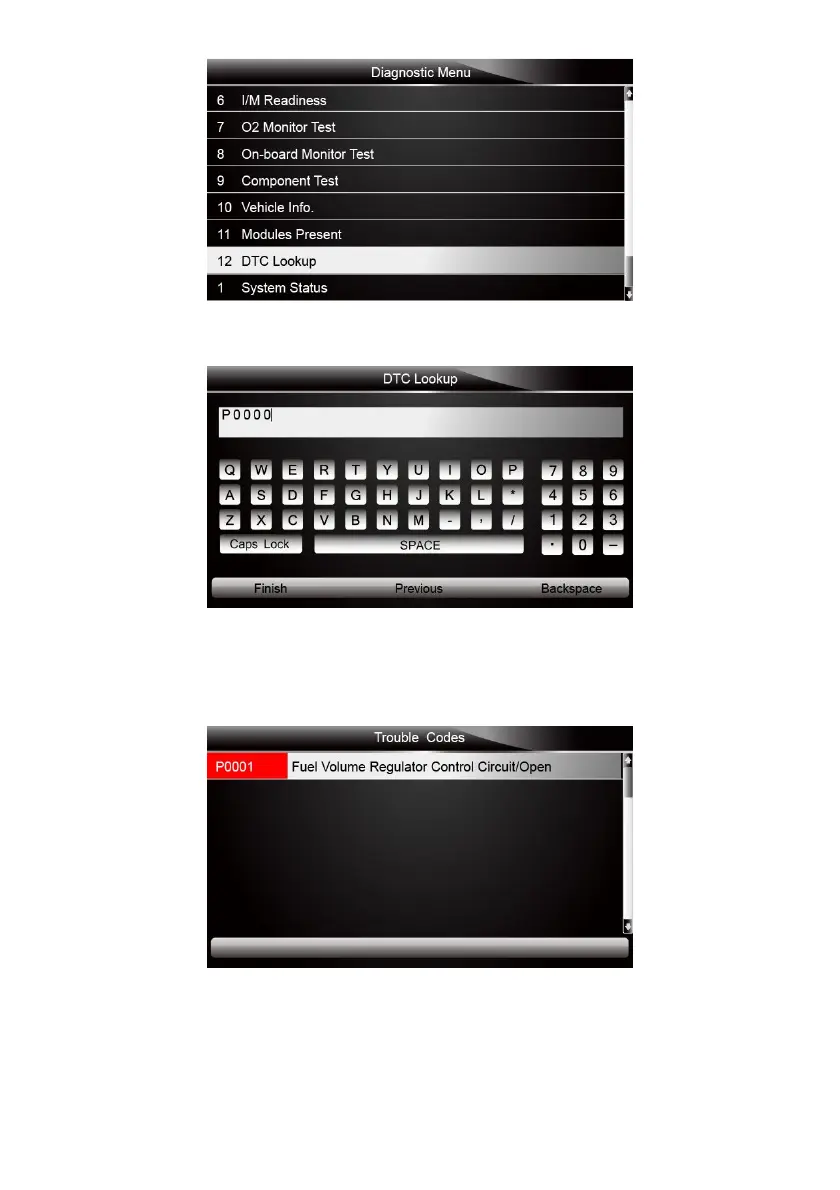 3. A screen with code number and its definition displays. If definition could not be found (SAE or