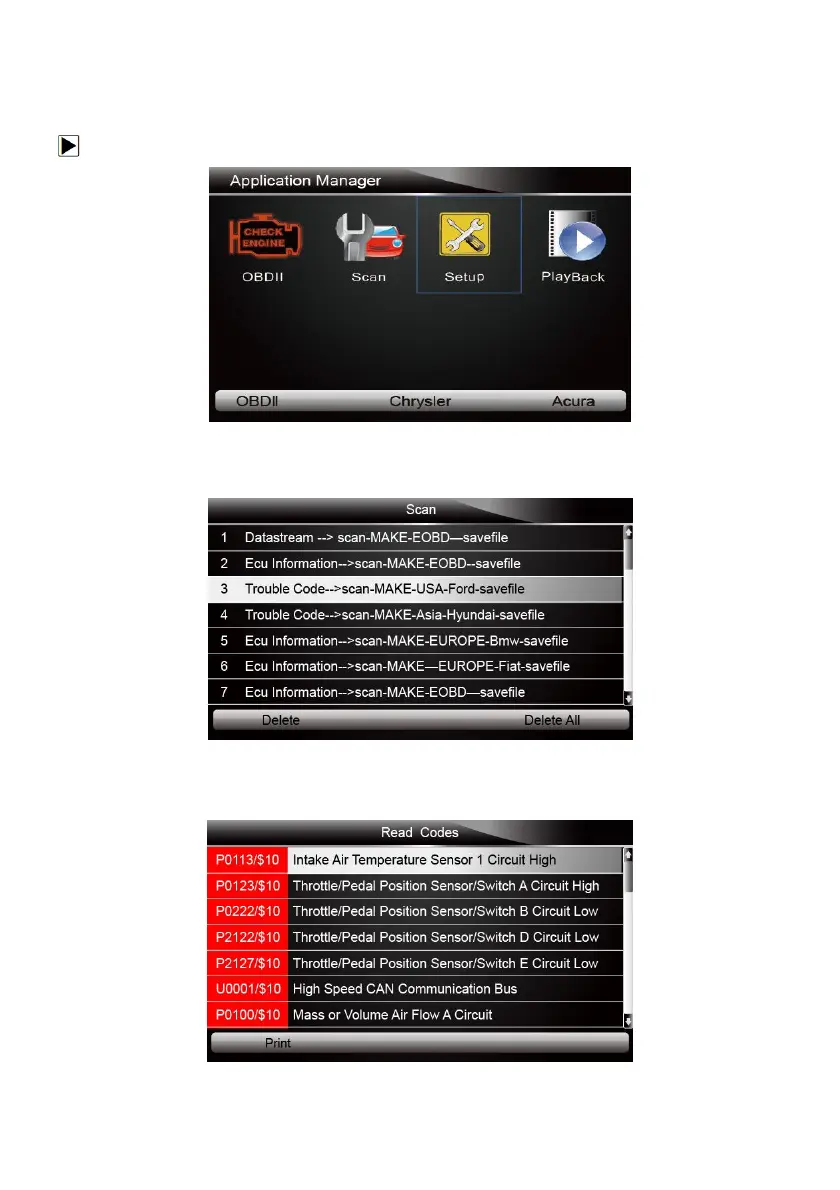 The PlayBack option leads to screens for review of recorded test results.