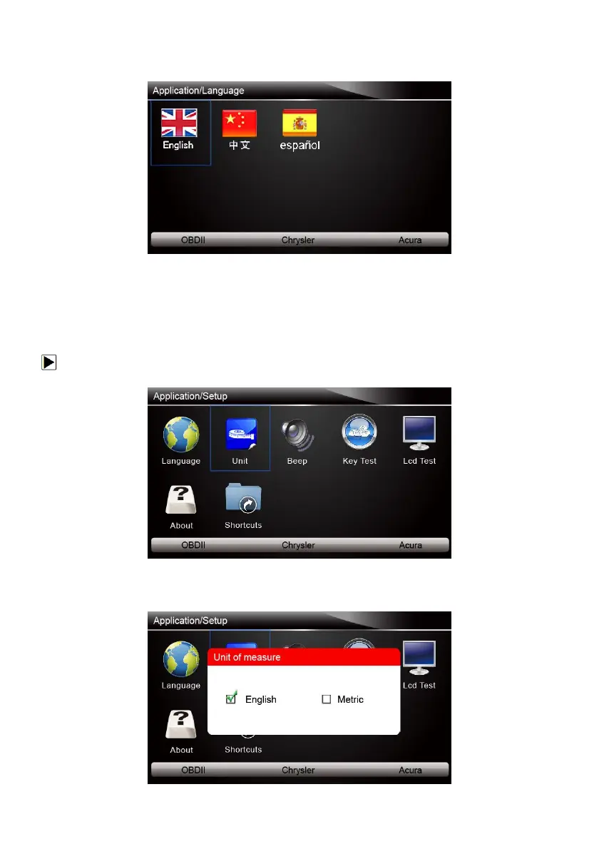 2. Press the LEFT/RIGHT arrow key select a language and press the ENTER key to confirm.