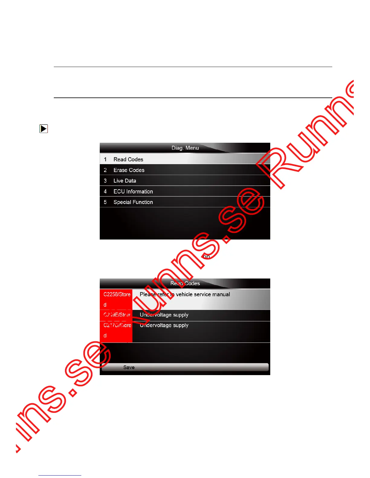 1. Scroll with the arrow keys to highlight Read Codes from Diag. Menu and press the ENTER key.