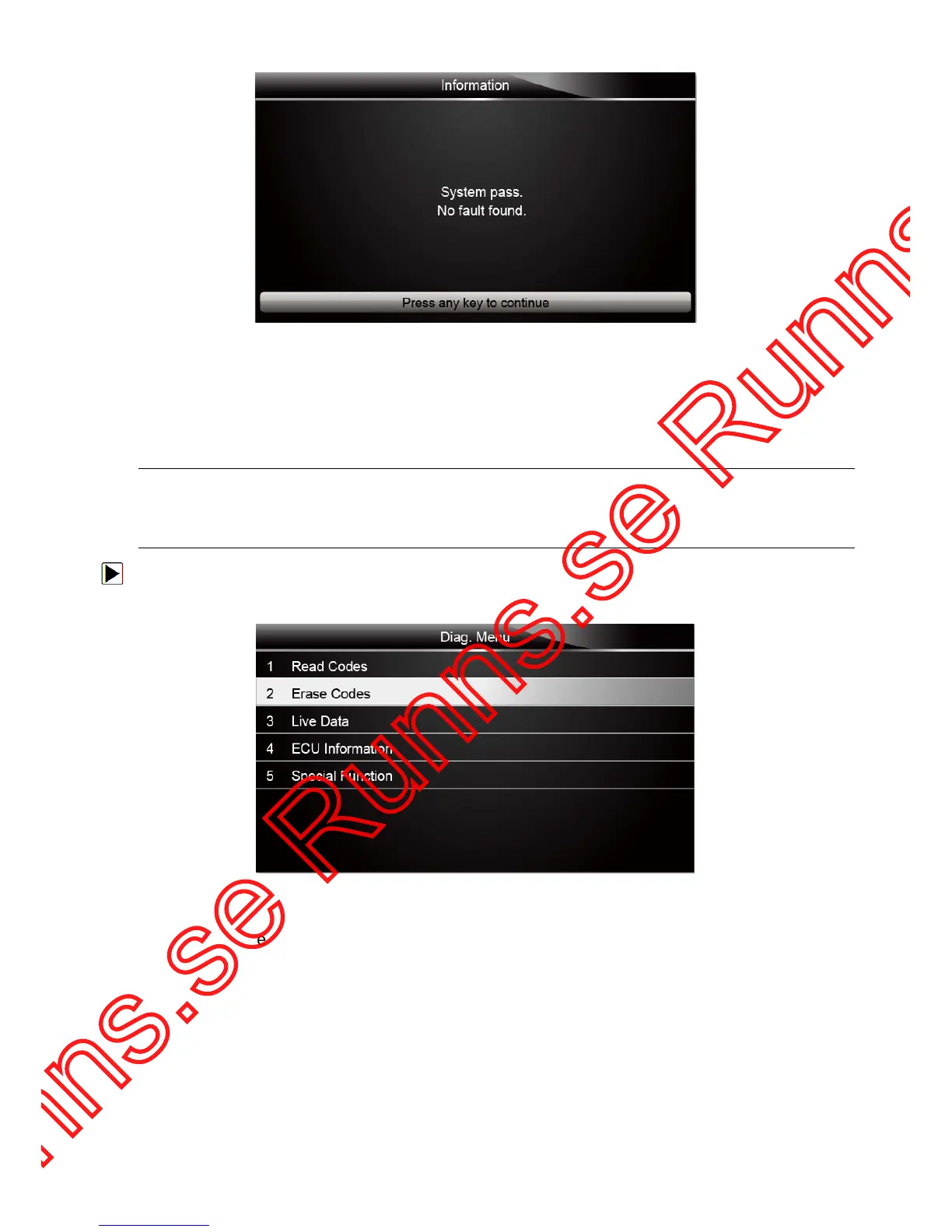 1. Scroll with the arrow keys to highlight Erase Codes from Diag. Menu and press the ENTER