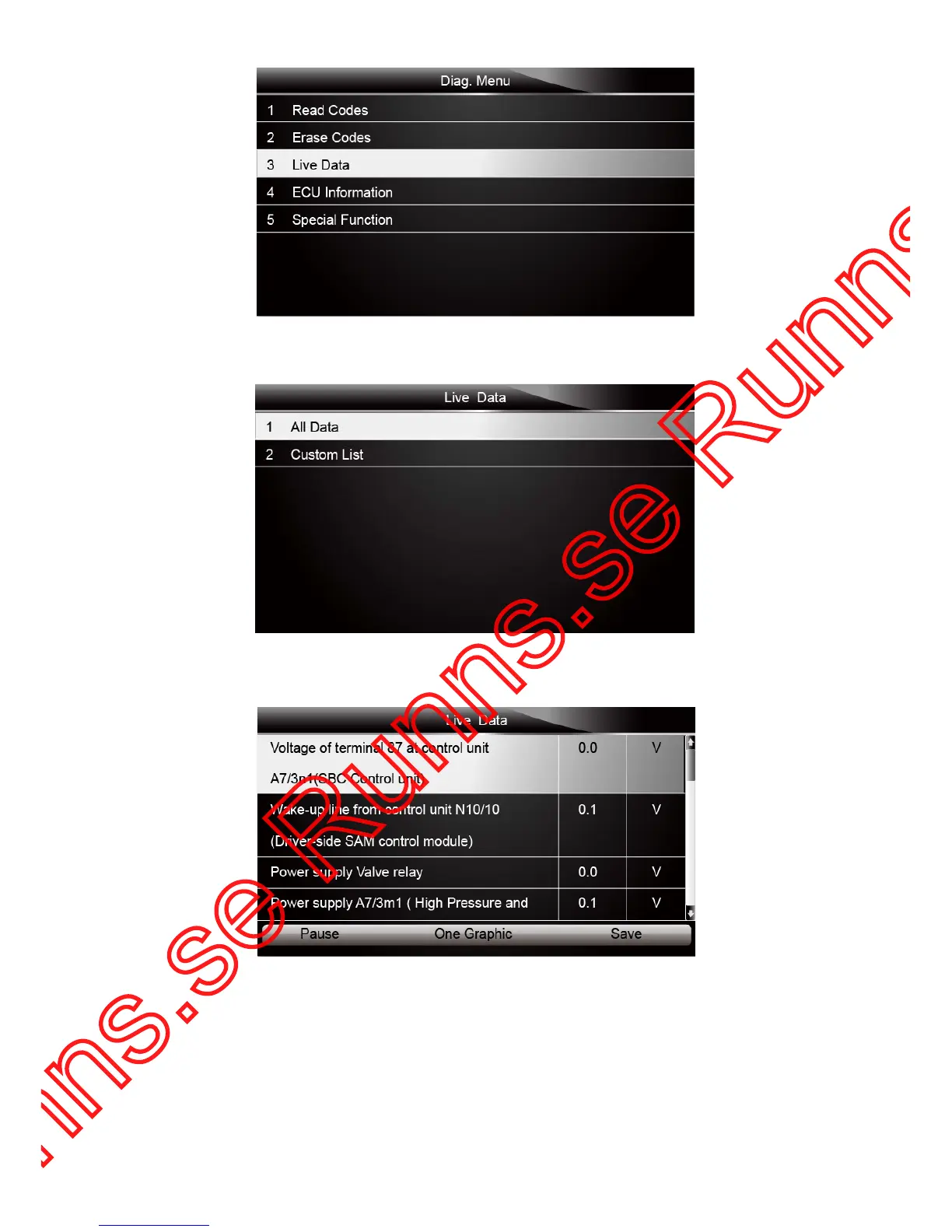 3. Select the All Data from the menu and press the ENTER key to display the datastream screen.