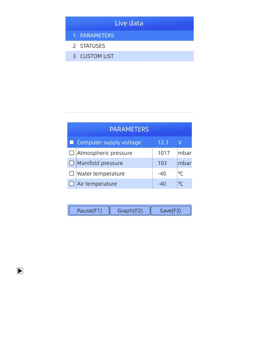 3. To record the data to memory of the scanner, use the function key SAVE F3, and press Pause F1 to stop