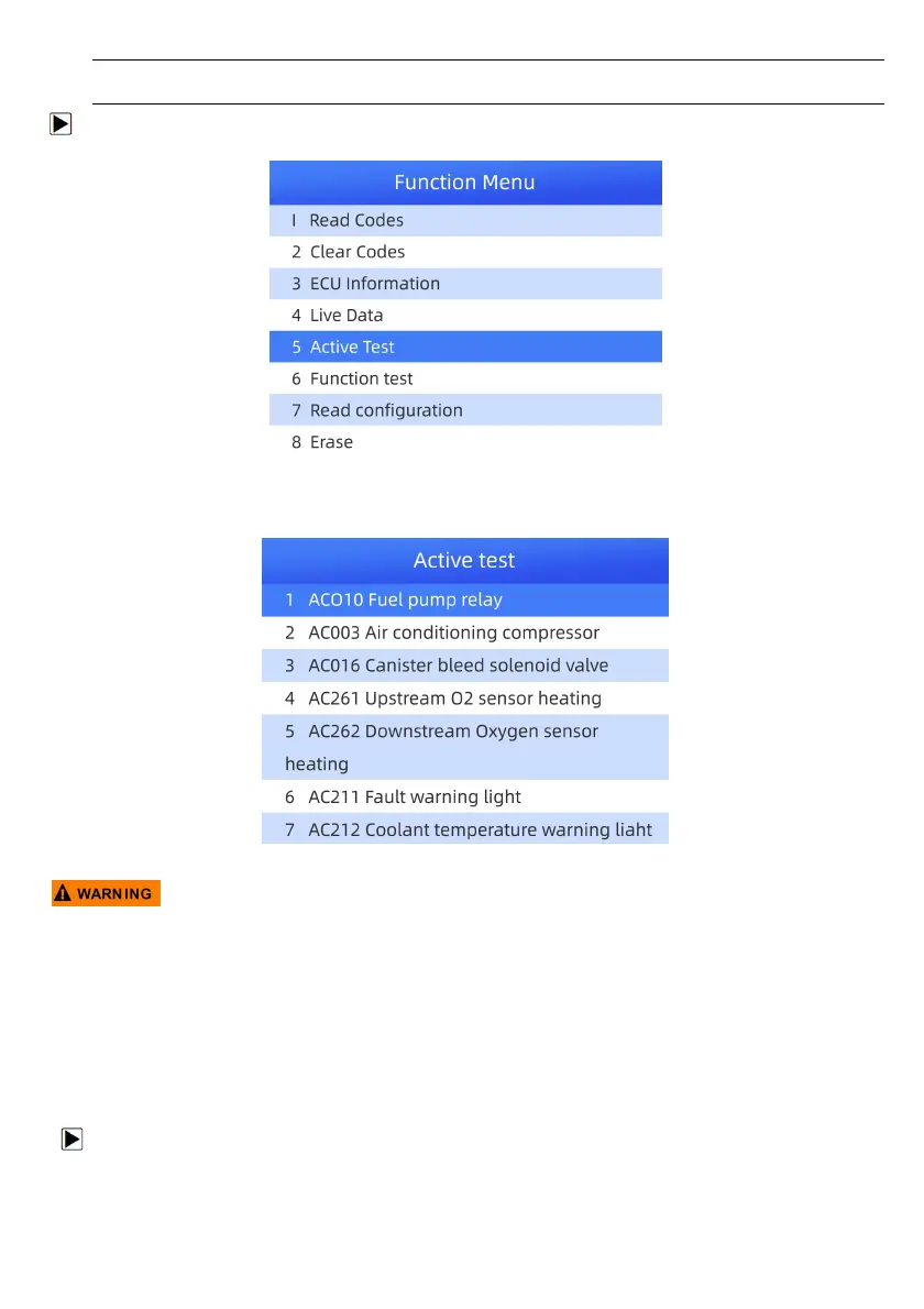 1. Select Active Test from Function Menu and press the ENTER key.