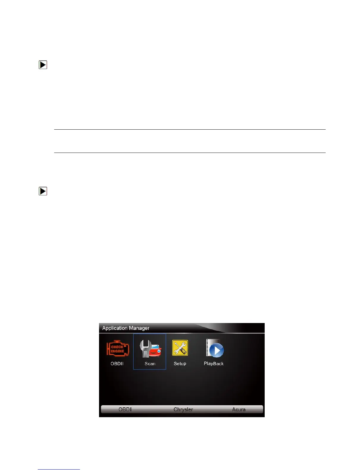When the scan tool boots up, the Home screen opens. This screen shows all applications loaded