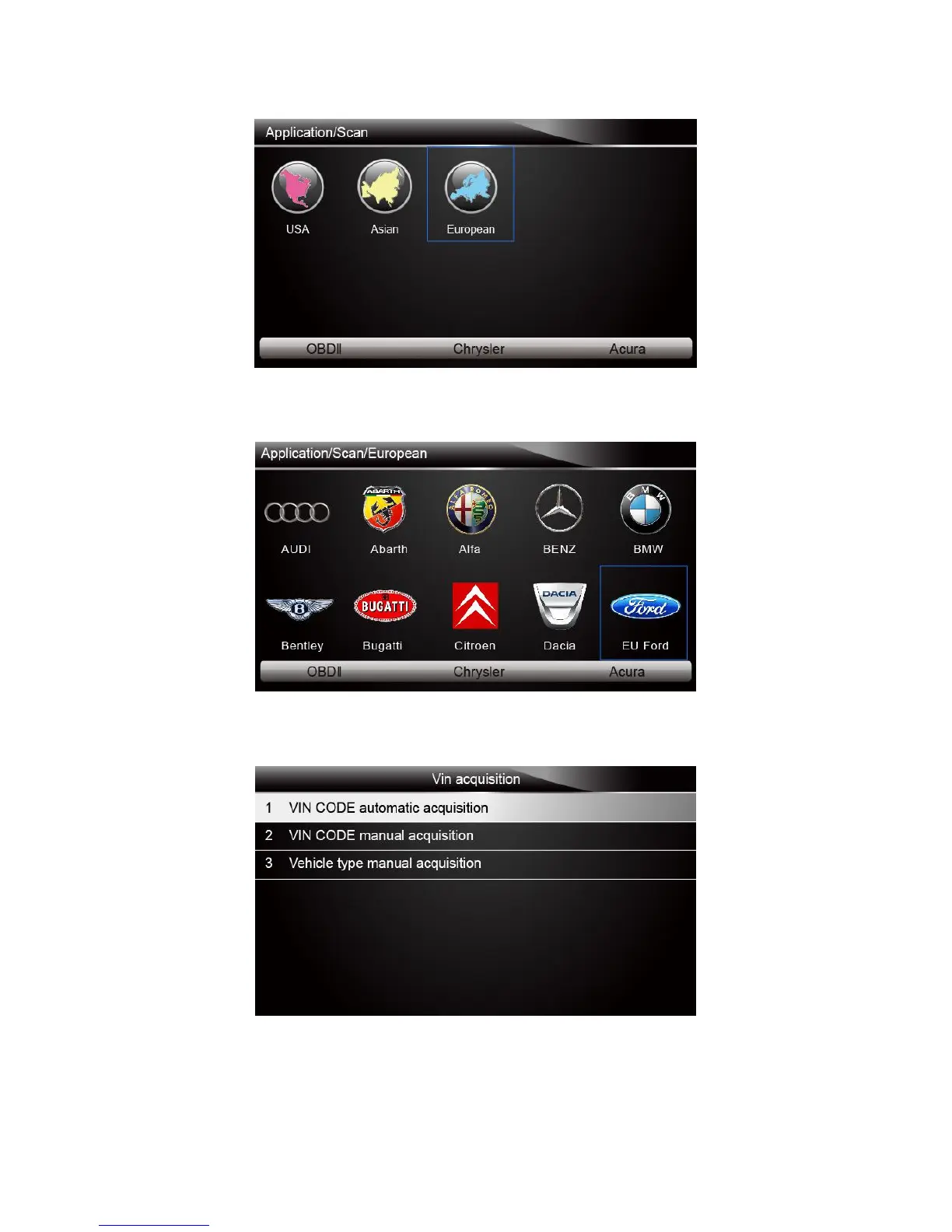 Figure 4-3 Sample Vehicle Manufacturer Selection Screen