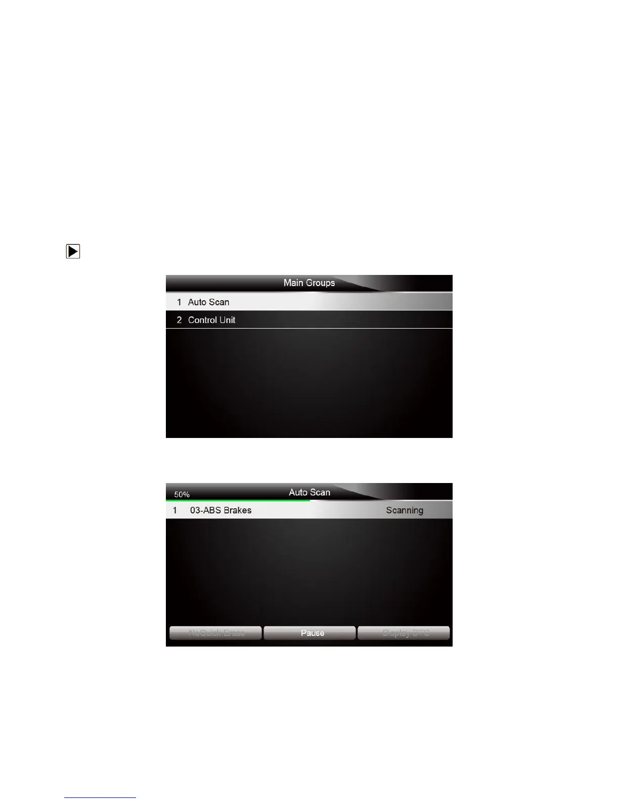 Auto Scan performs an automatic system test to determine which control modules are installed on
