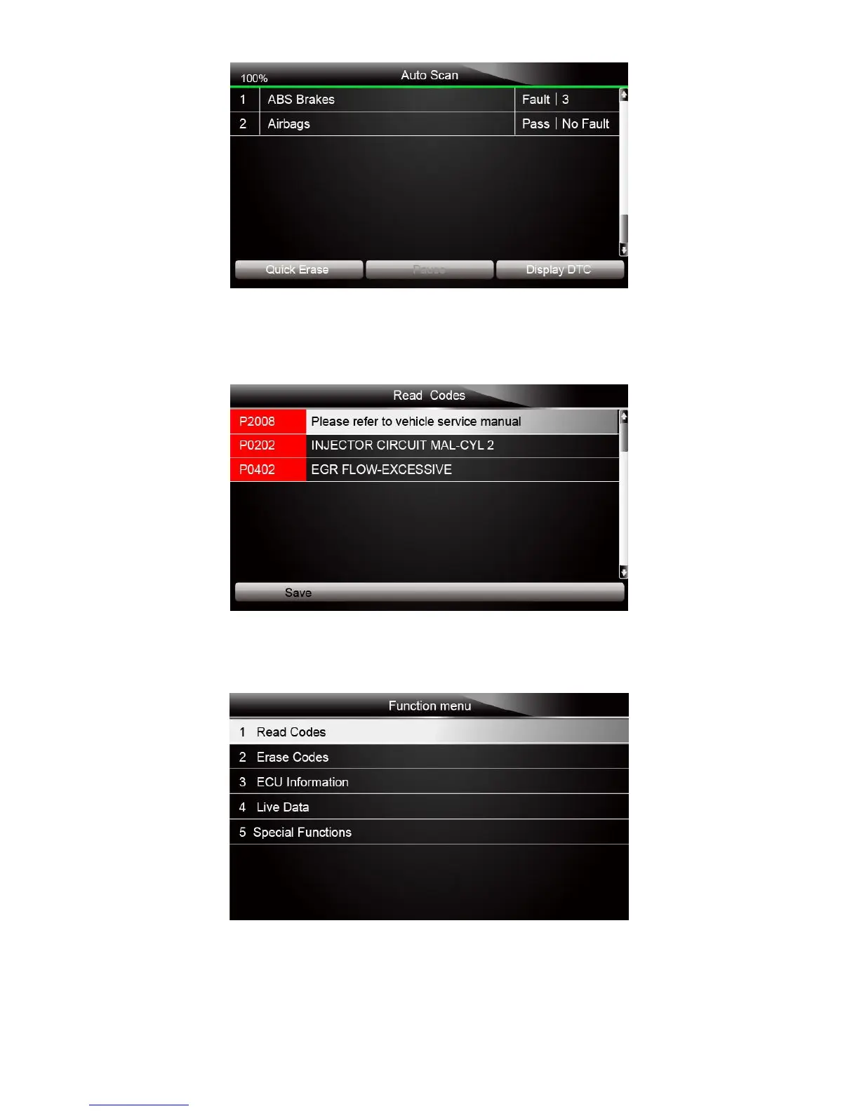 4. If there is diagnostic trouble code(s) detected in a control unit, press the function key