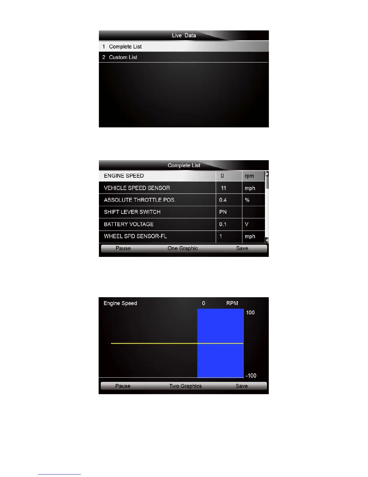2. Select the Complete List from the menu and press the ENTER key to display the datastream