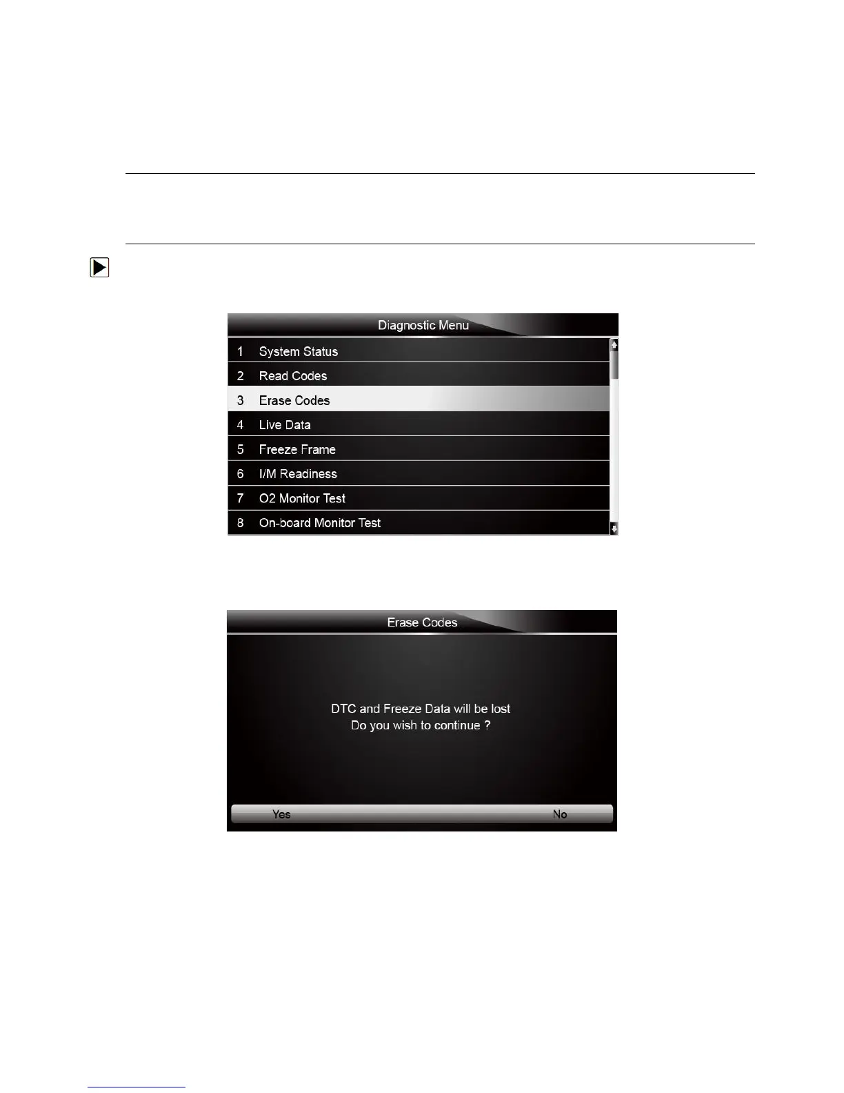 1. Scroll with the arrow keys to highlight Erase Codes from Diagnostic Menu and press the