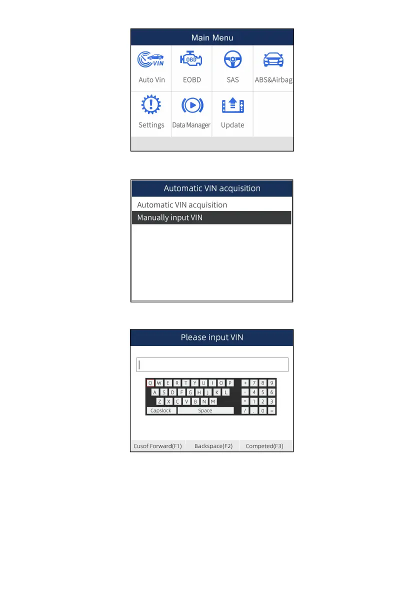 2. Select Manually input VIN from the menu, and press the ENTER key.