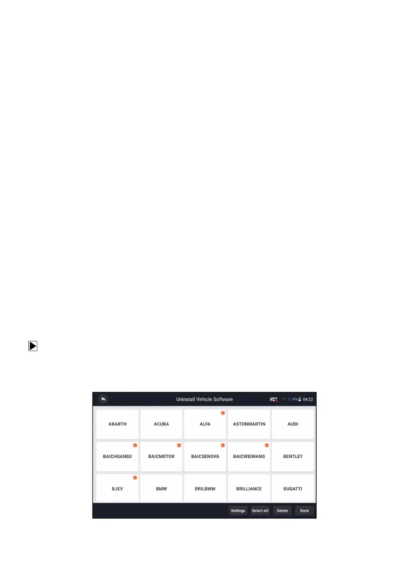2. Tap the Uninstall Vehicle Software option on the option list.