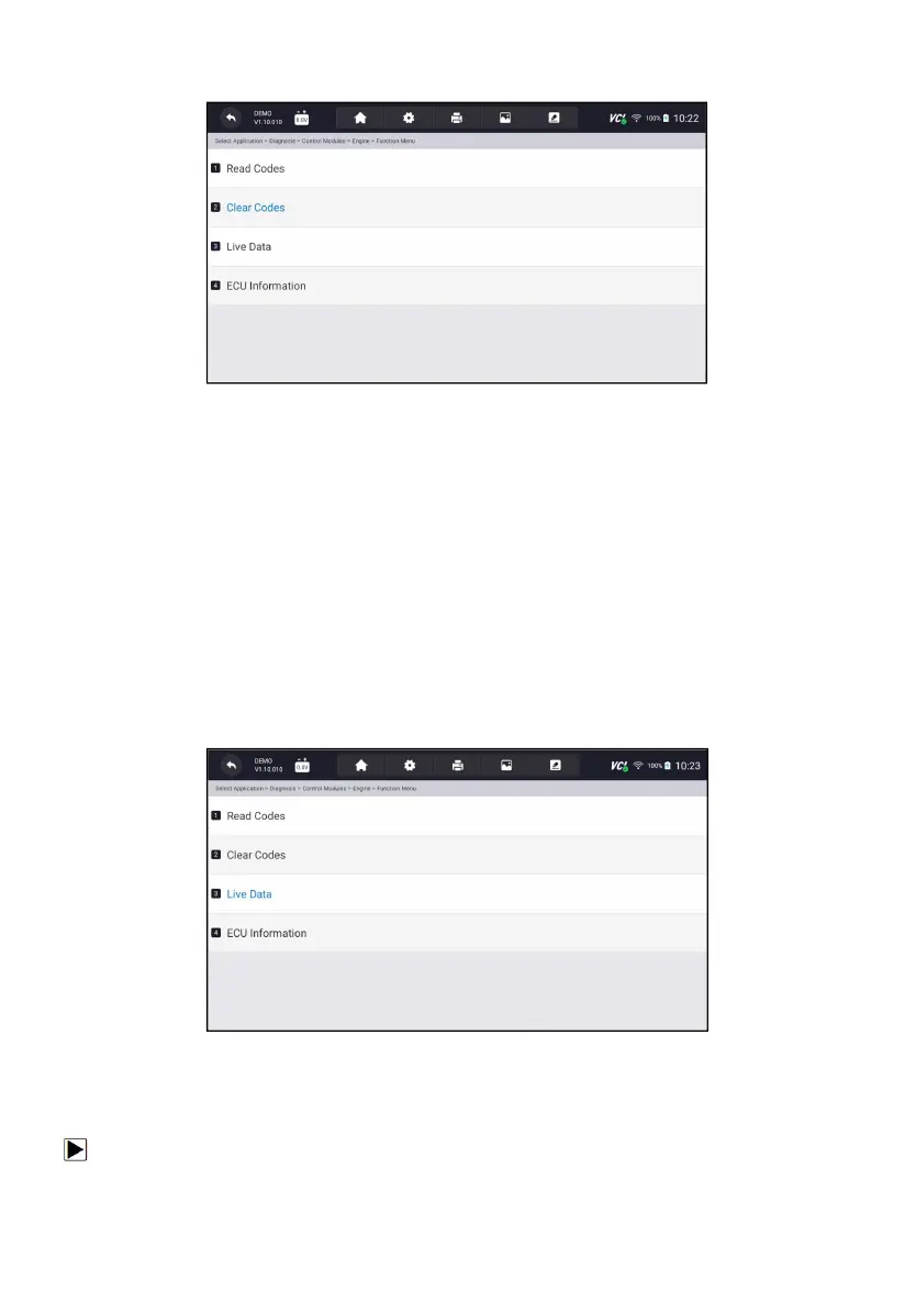 1. Press Clear Codes from Select Diagnostic Function menu.