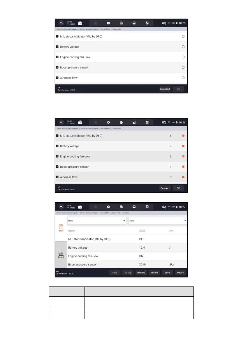 Figure 9-16 Sample Live Data Selection Screen