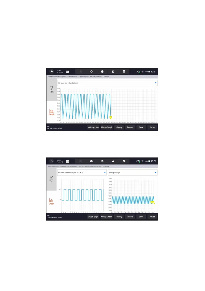 ● Multi-graphs: displays the parameters in waveform graphs, giving you