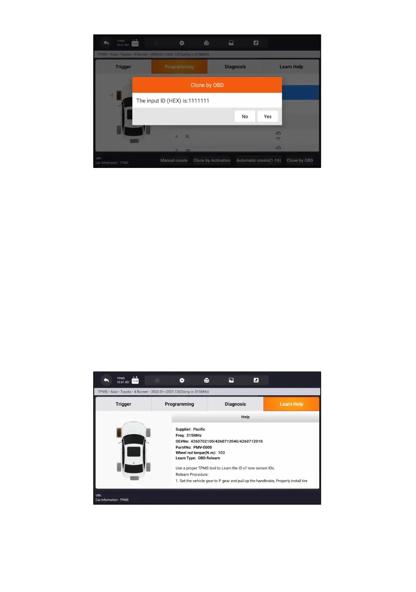 OBD relearn, Automatic relearn, Static relearn, Clone Sensor.