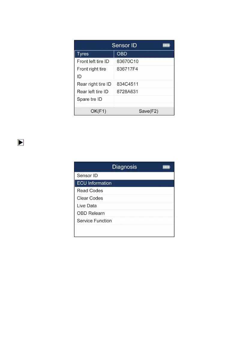 3.The version information will be displayed. Press F2 button to save the version information or F1
