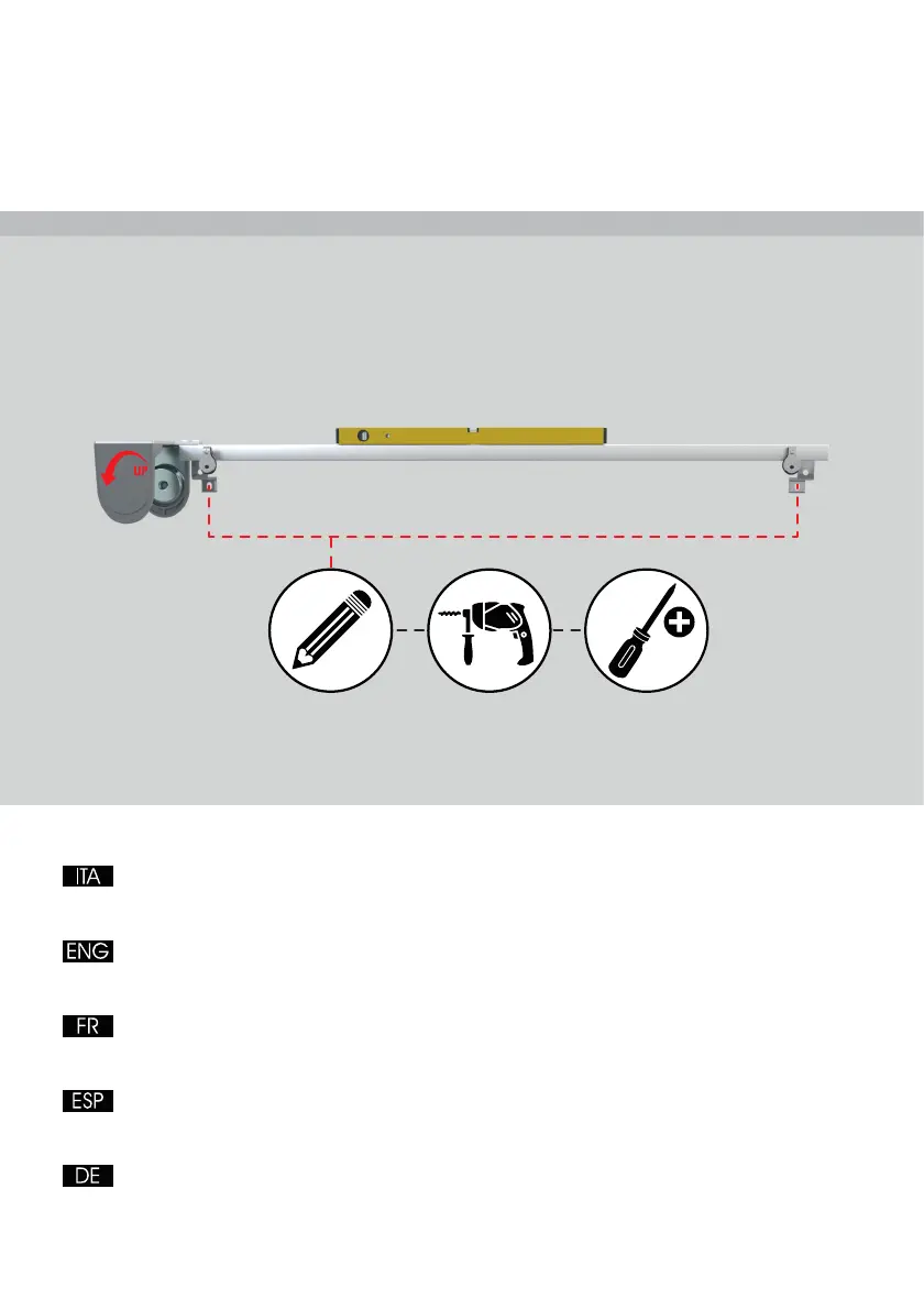 upper square rail to the wall using the appropriate plugs supplied (short screw).
