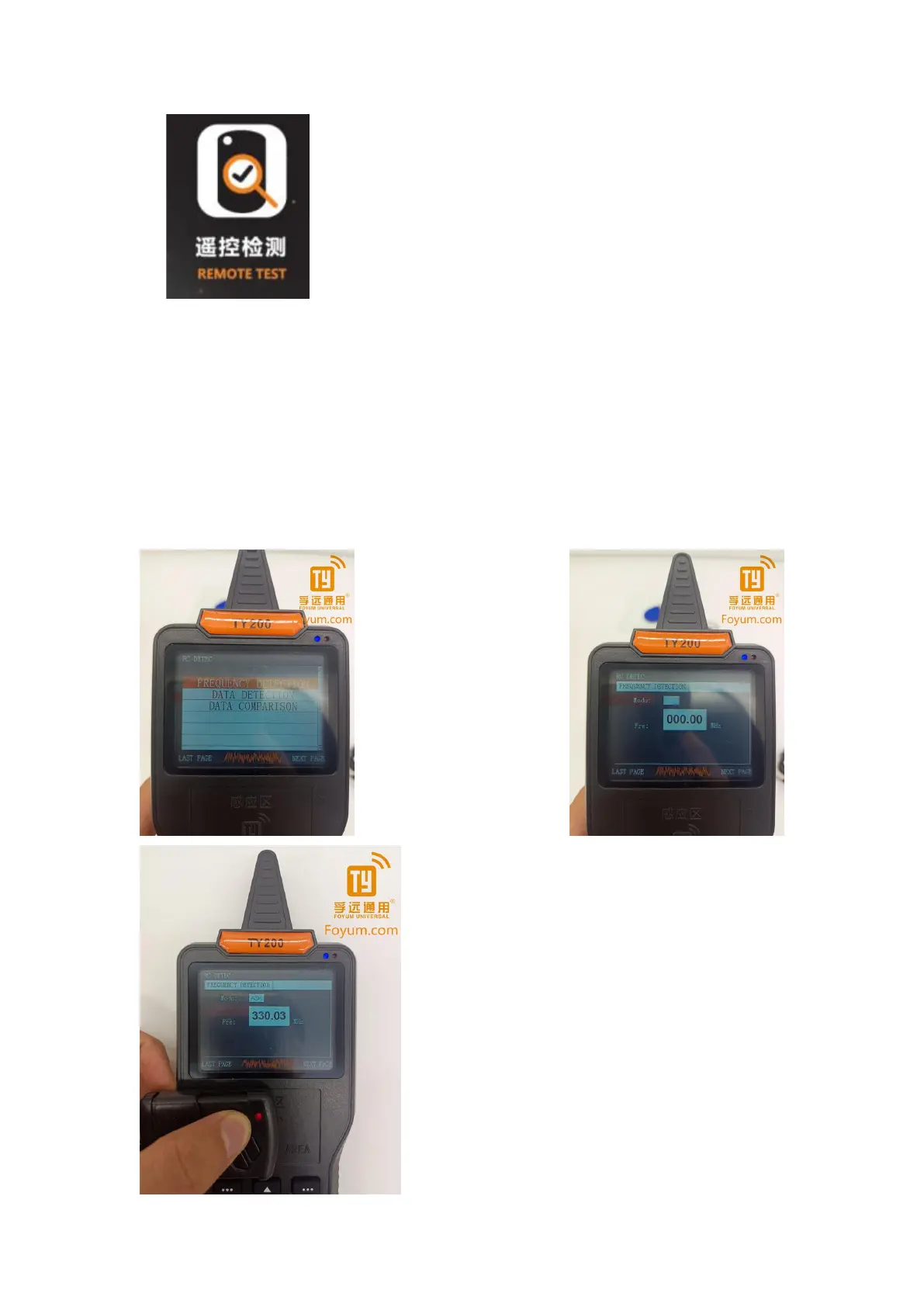 When testing frequency,users press remote button to transmit signal as