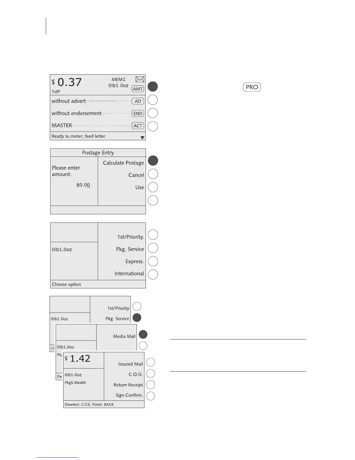 The optimail 30 successively prompts you to