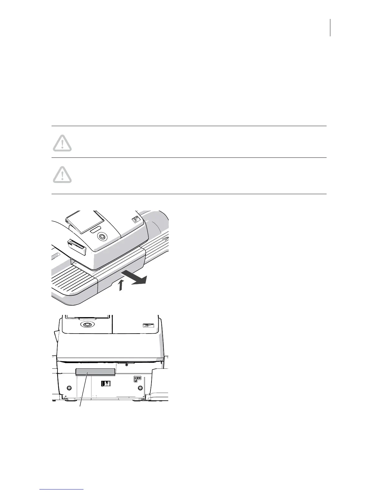 Caution! As long as the print system is in printing position, the drawer is
